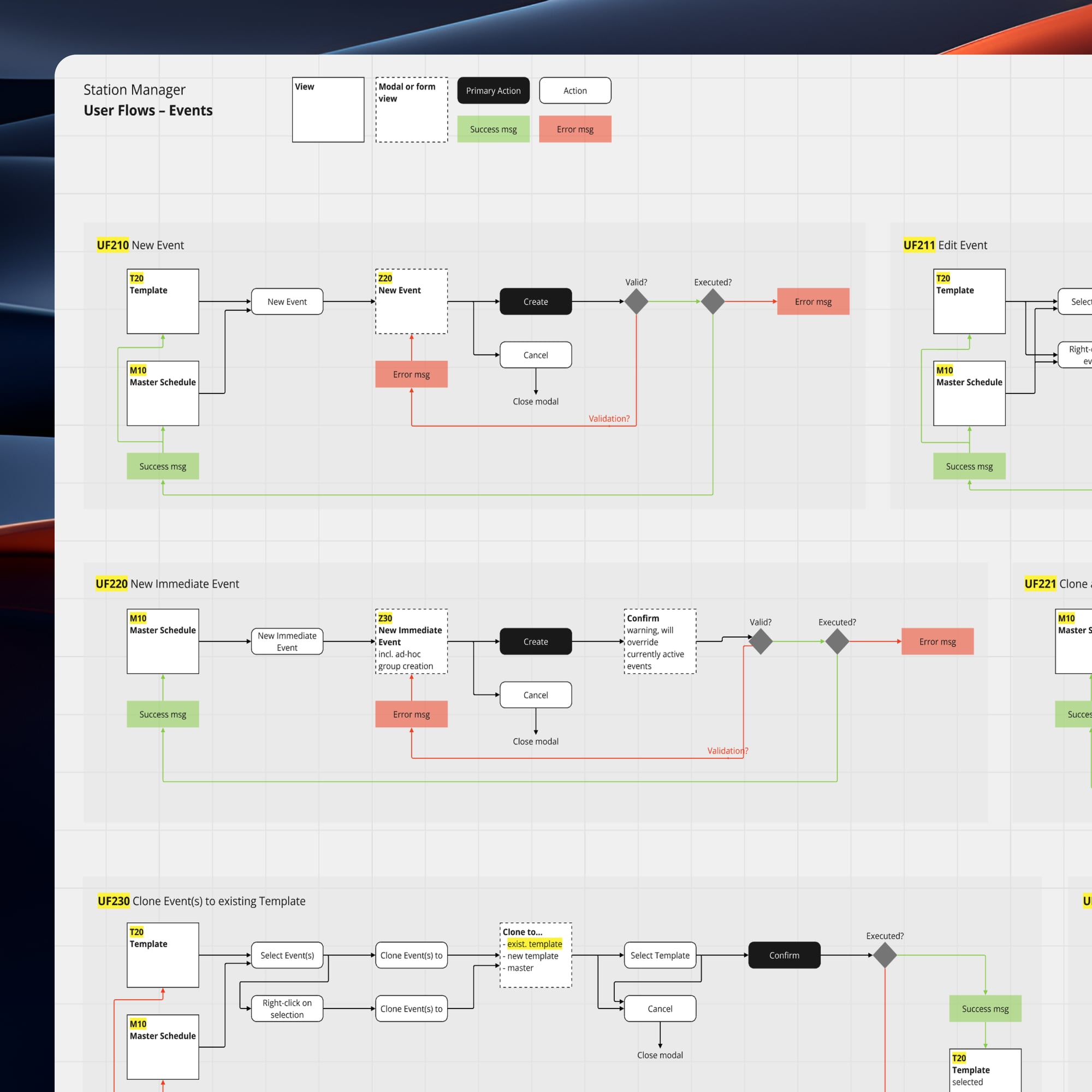 The UX prioritized clarity, consistency, and feedback over novelty, ensuring trained station managers could operate quickly and safely during both routine operations and high-pressure situations.